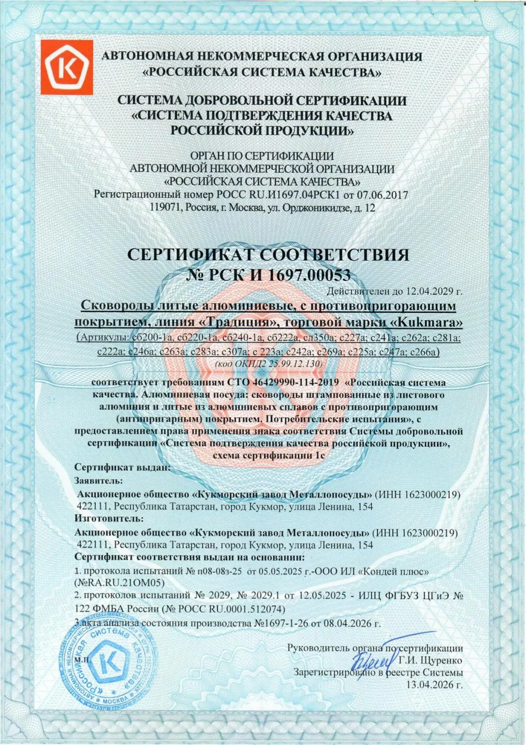 Декларация на чугунную посуду Kukmara